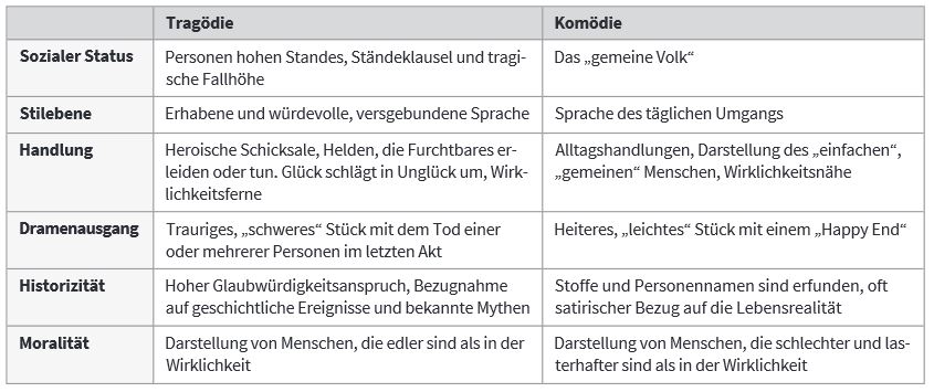 Generell lassen sich sechs grundlegende Unterschiede zwischen Tragödie und Komödie heraustellen:
